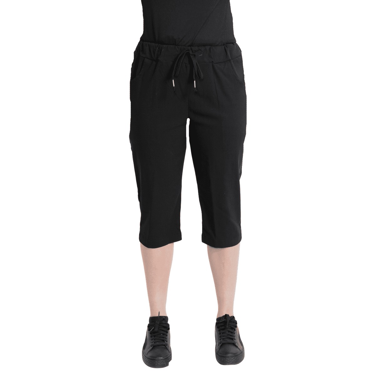 En elastisk capri i en storlek som passar alla. 7/8-längd ger en moderiktig touch. Utrustad med 2 framfickor och ett justerbart snöre i midjan för en personlig passform. Perfekt för en aktiv livsstil och för att ta på sig och känna sig bekväm hela dagen.