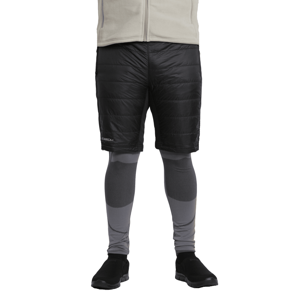 Thermoshorts med tunn vaddering fram och bak. Ett förstärkningsplagg att ha över tights eller träningsbyxor eller under ett skalplagg för extra värme. Stretchpaneler både på yttersidorna och innersidorna för maximal rörlighet och ventilation. Korta blixtlås i benavsluten. Resår i baksidan av midjan för bättre flexibilitet, snöre i midjan så man kan justera. 2 Blixtlåsförsedda fickor fram. Fluorkarbonfri impregnering för vatten och smutsavvisning.